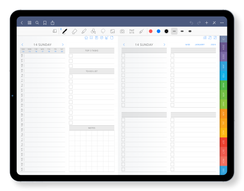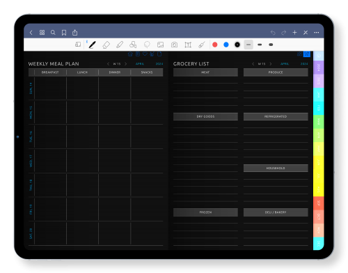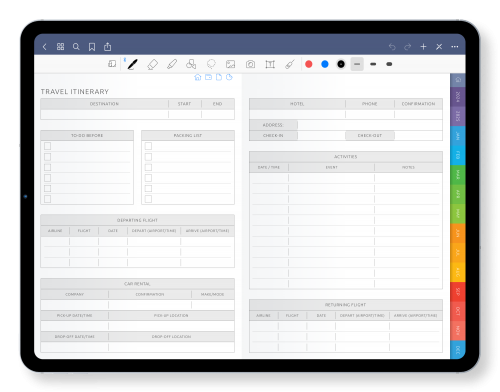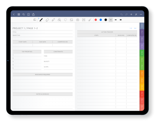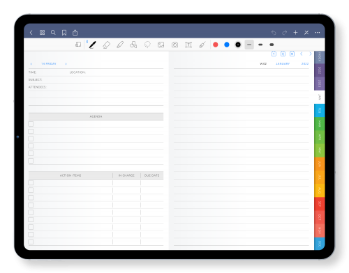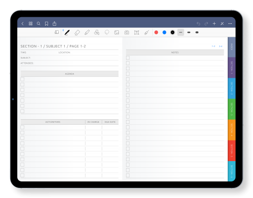Weekly Planner is a perfect tool to manage your weekly affairs. Download the templates you need and upload them to your iPad. Enjoy the high-quality hyperlinked structure of pages with clickable tabs, a quick notes board, and reminders designed for easy navigation and effective planning.