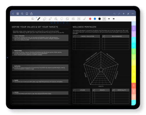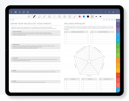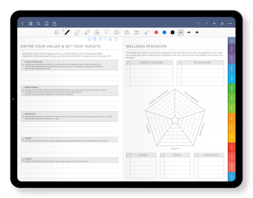 Any life tasks that require your attention can be recorded in your Life Planner. Everything is in one place, starting from creating a daily schedule, ending with notes about how you see yourself in the future, and setting life goals. Available in PDF format on your iPad tablet, work with Apple Pencil.